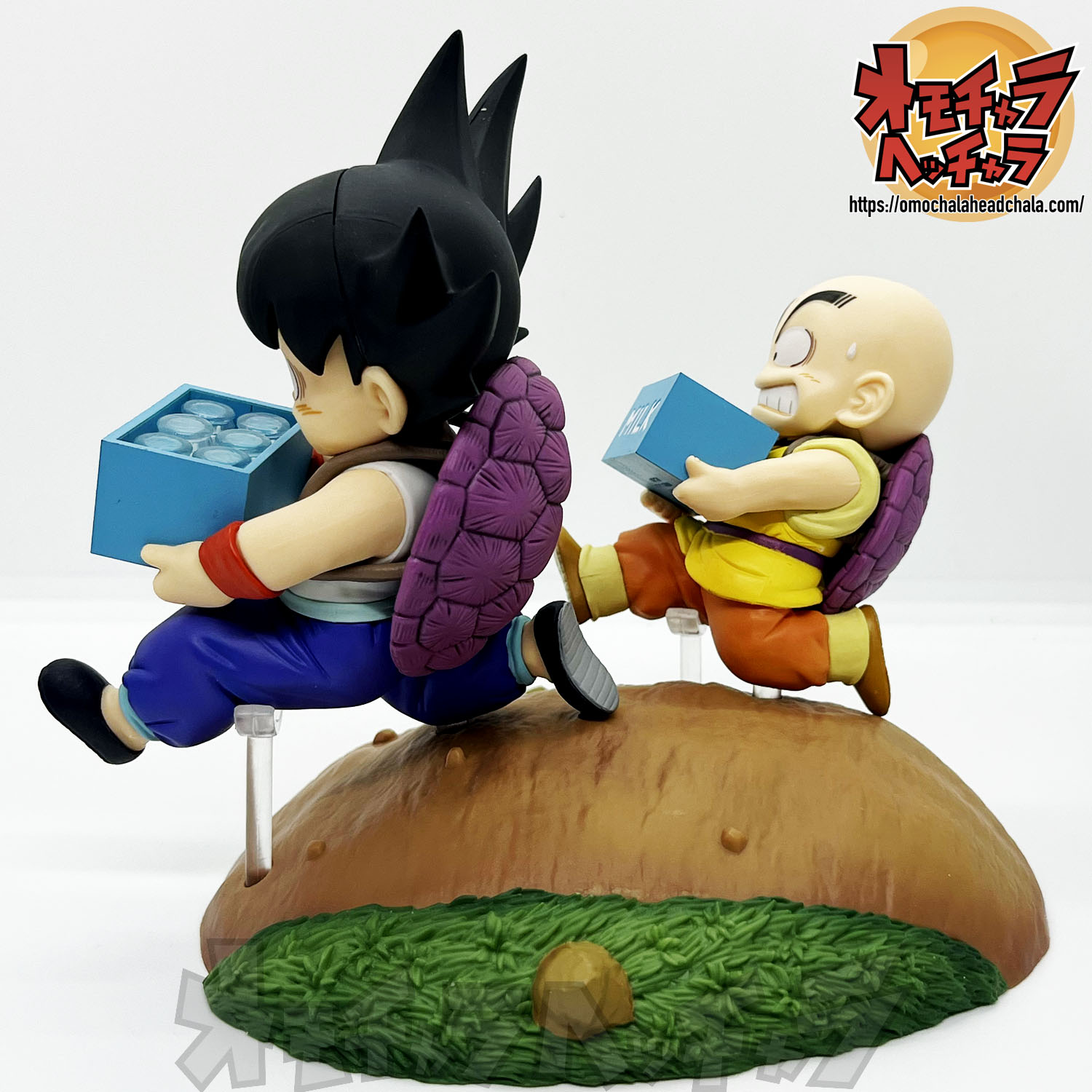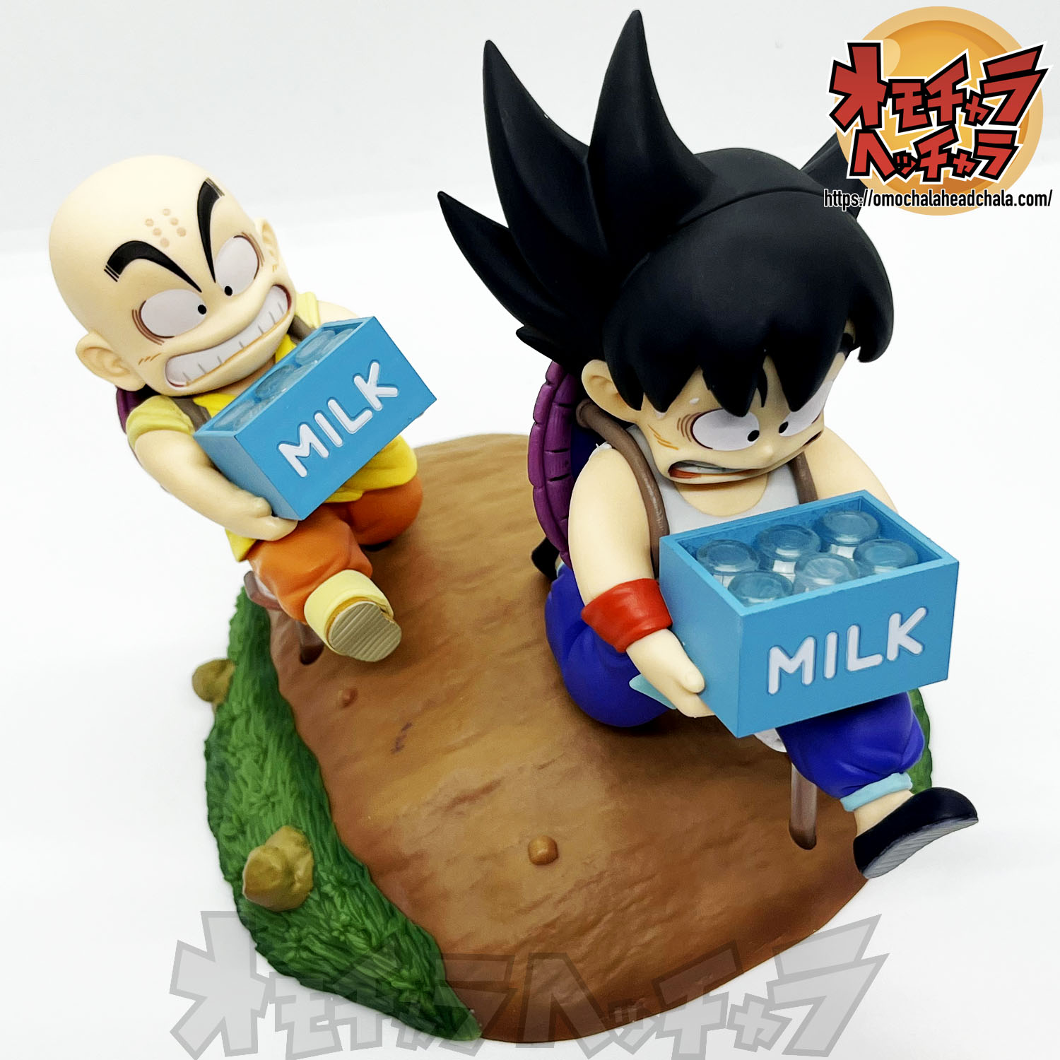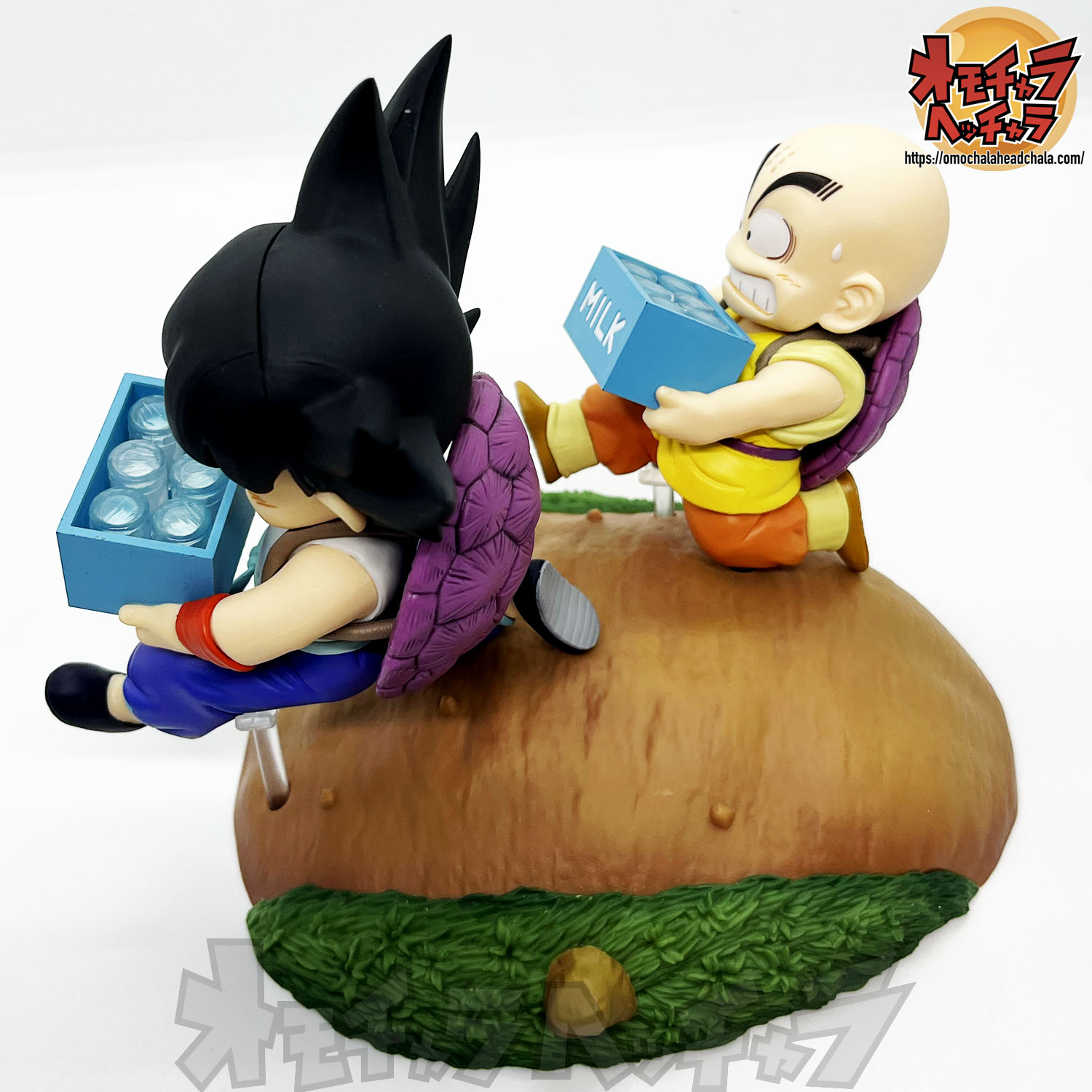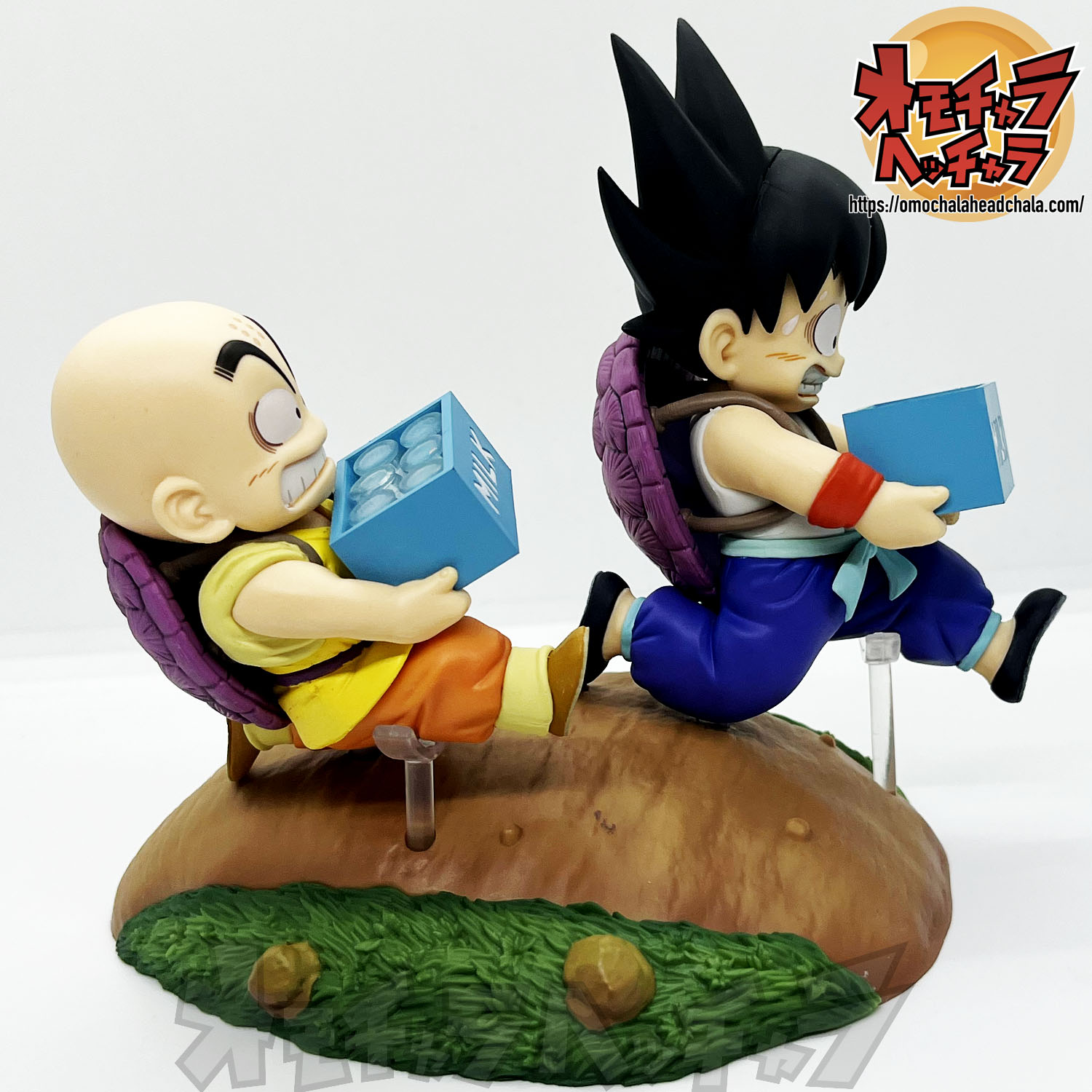 重い亀の甲羅を背負って牛乳配達する悟空とクリリンのフィギュアです。