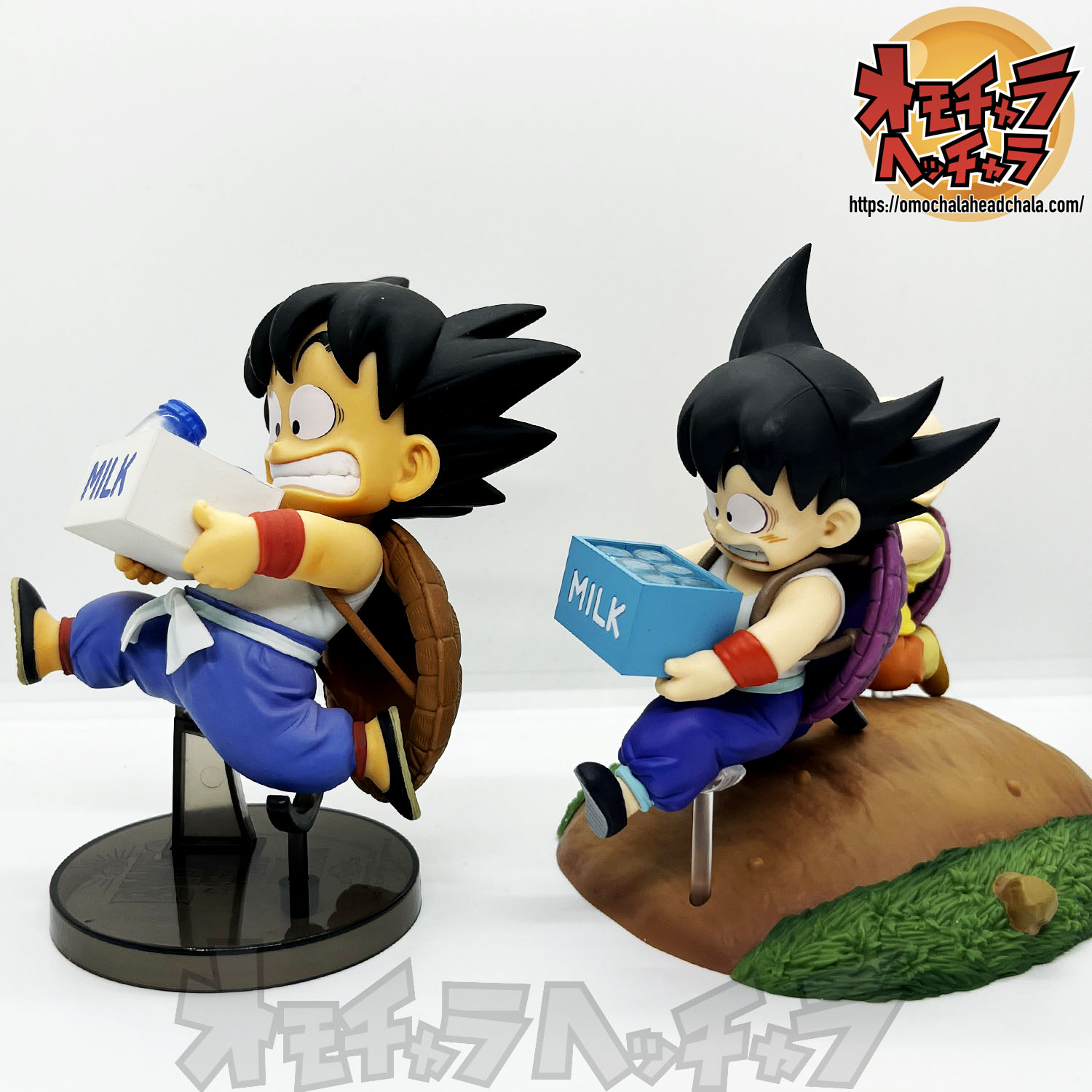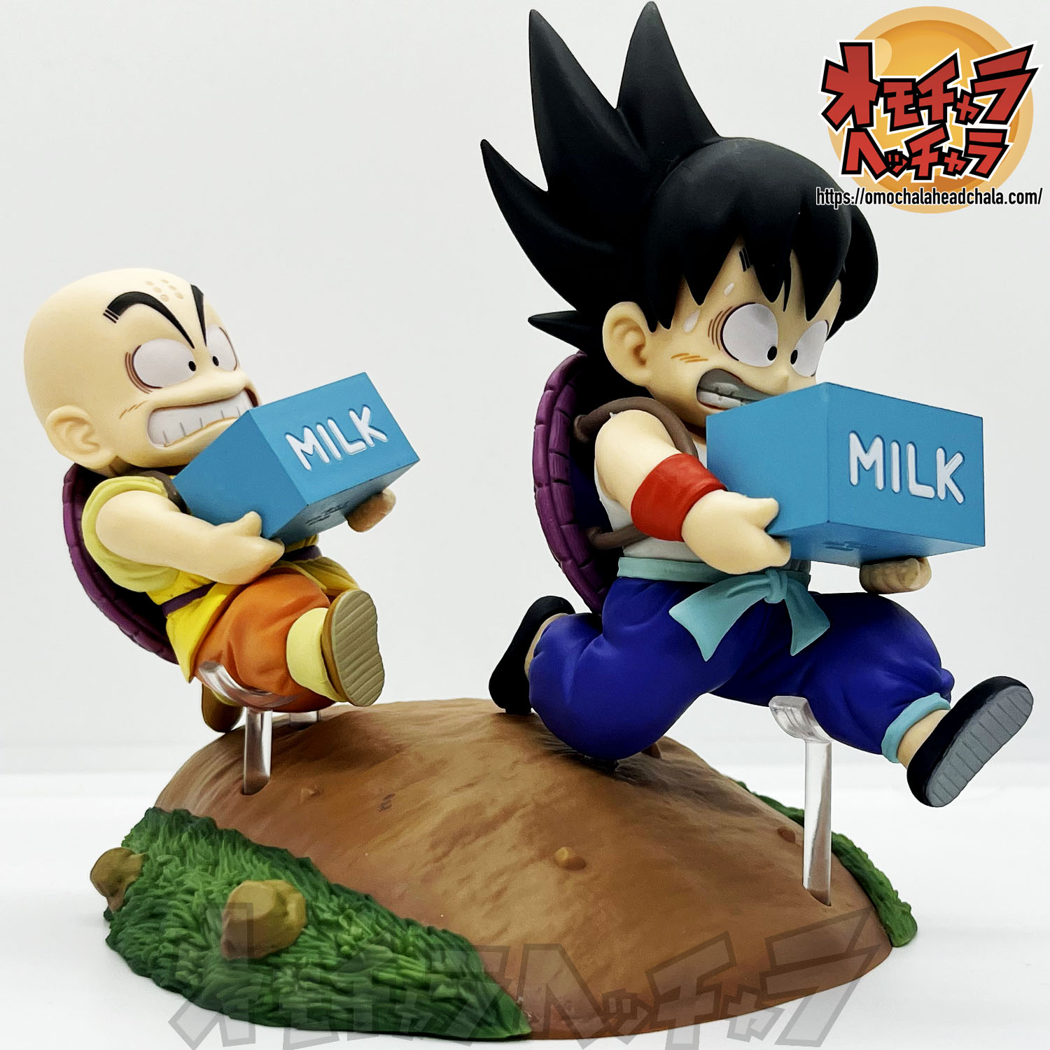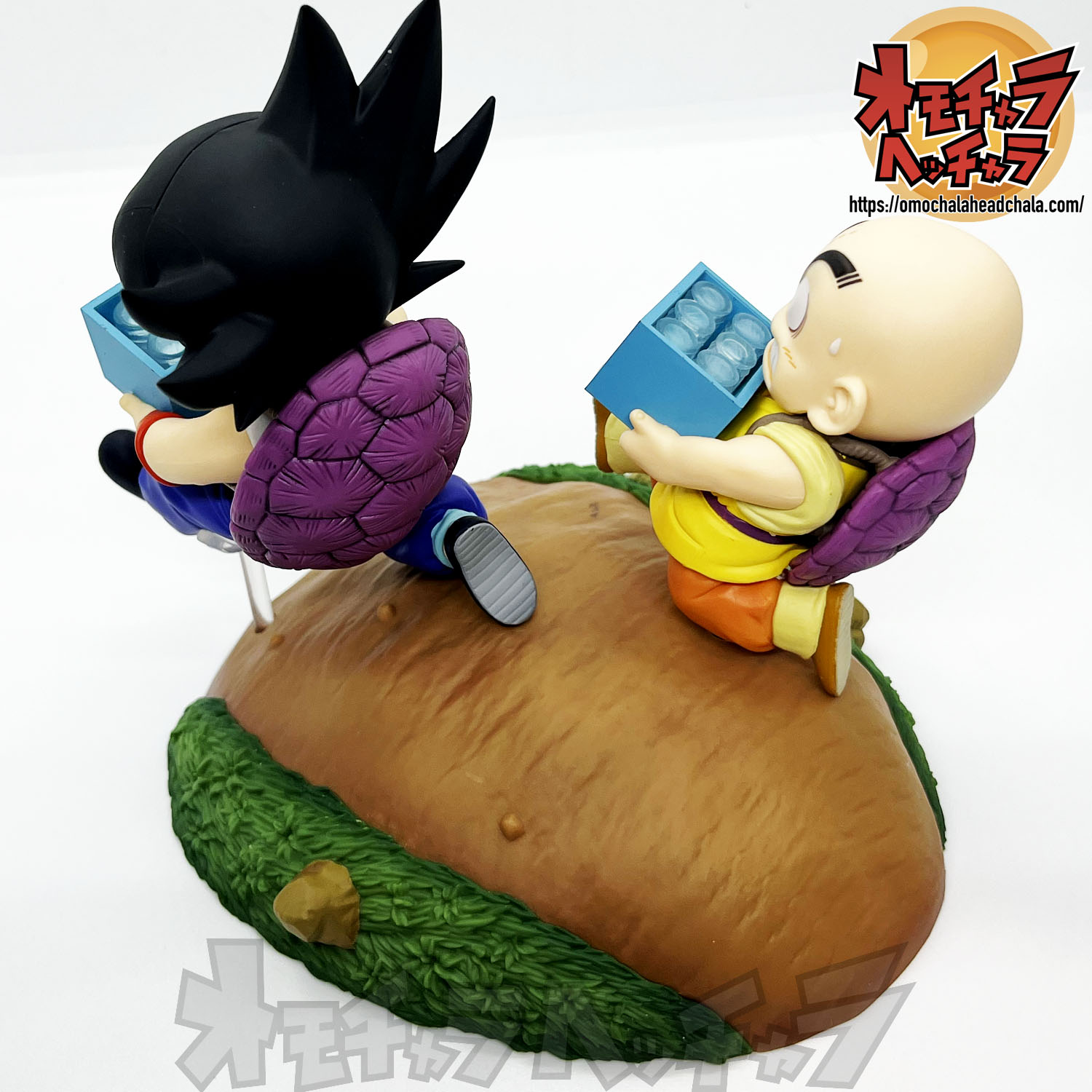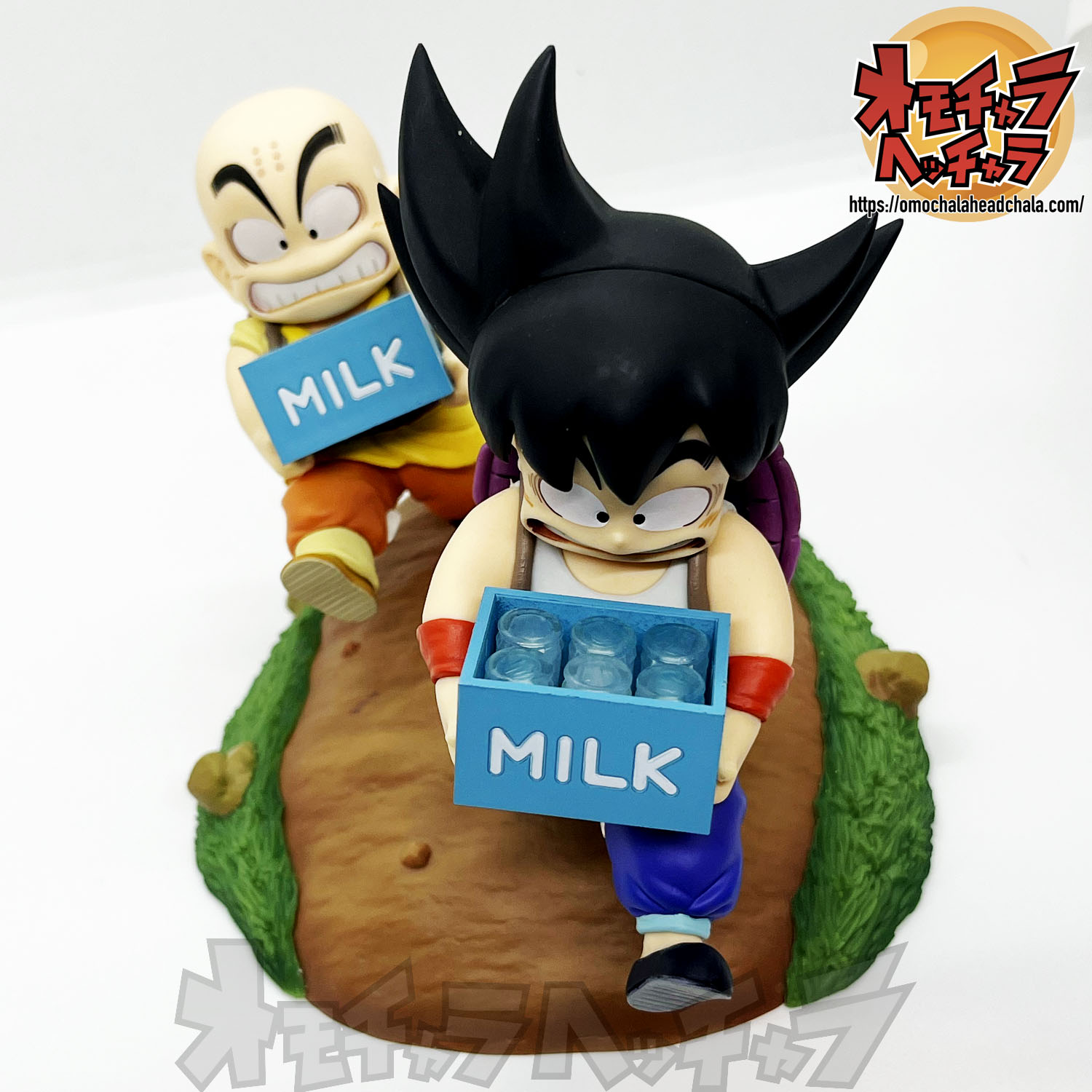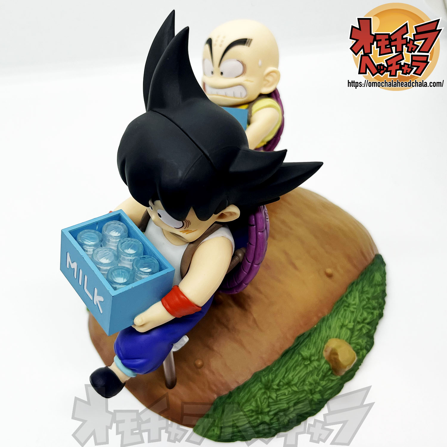 重い亀の甲羅を背負って牛乳配達する悟空とクリリンのフィギュアです。