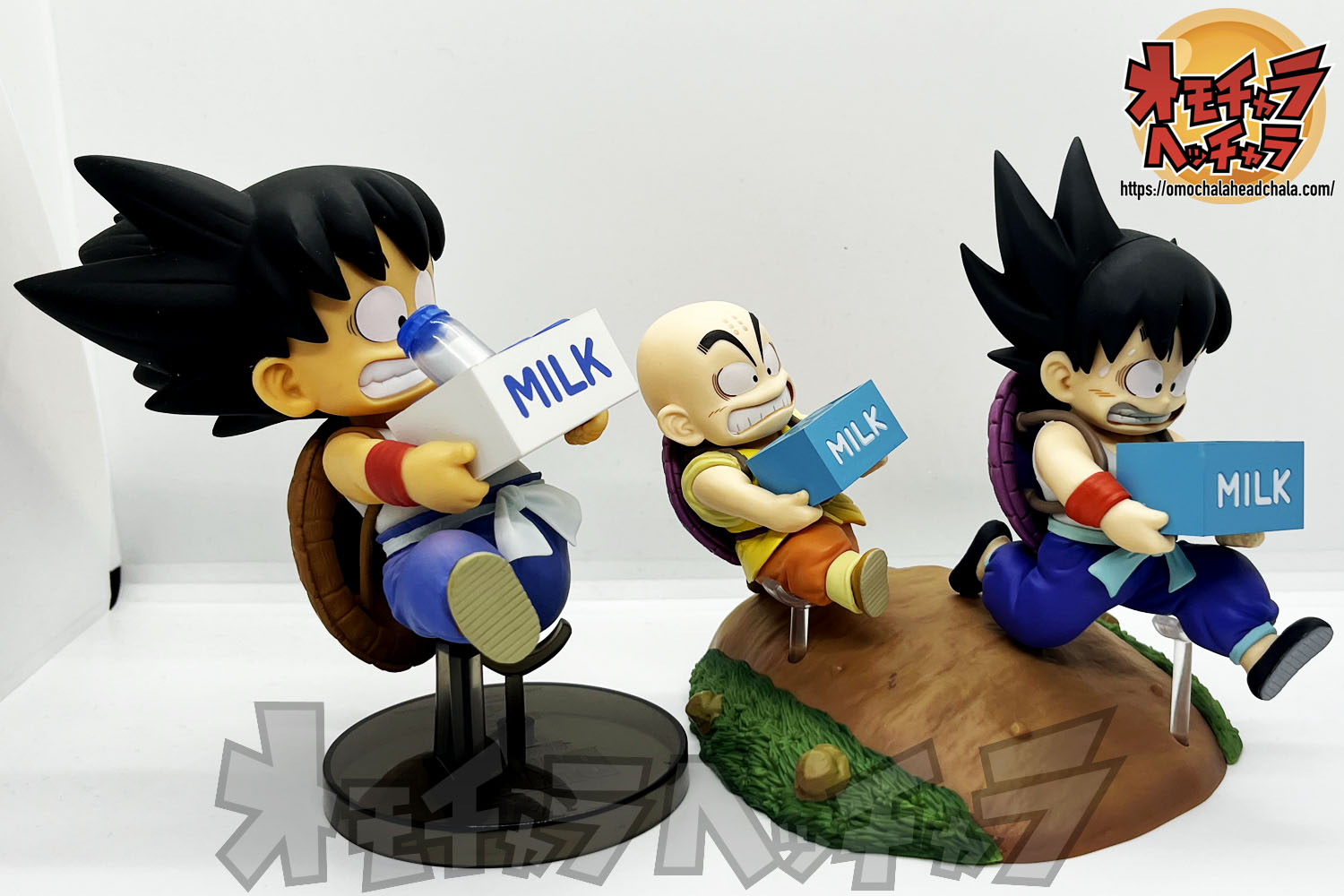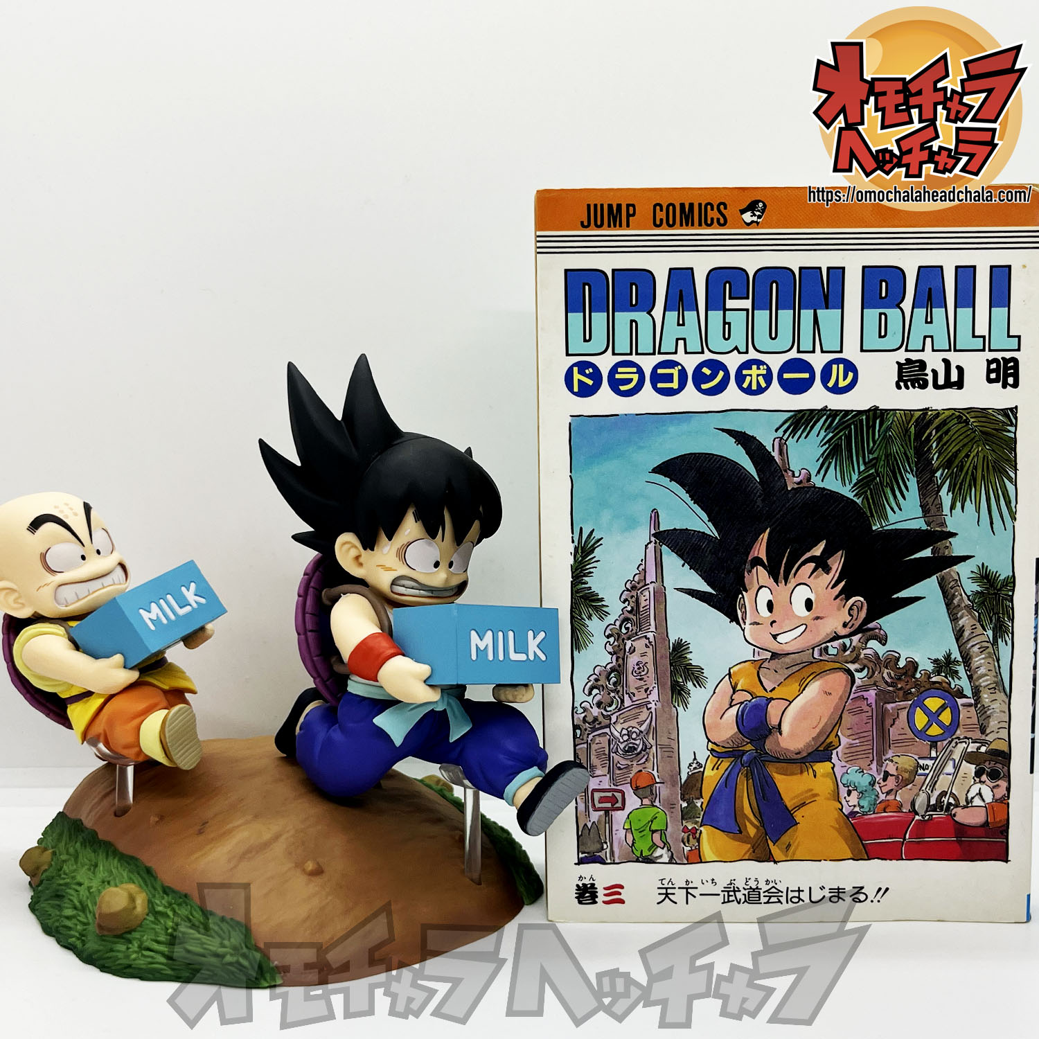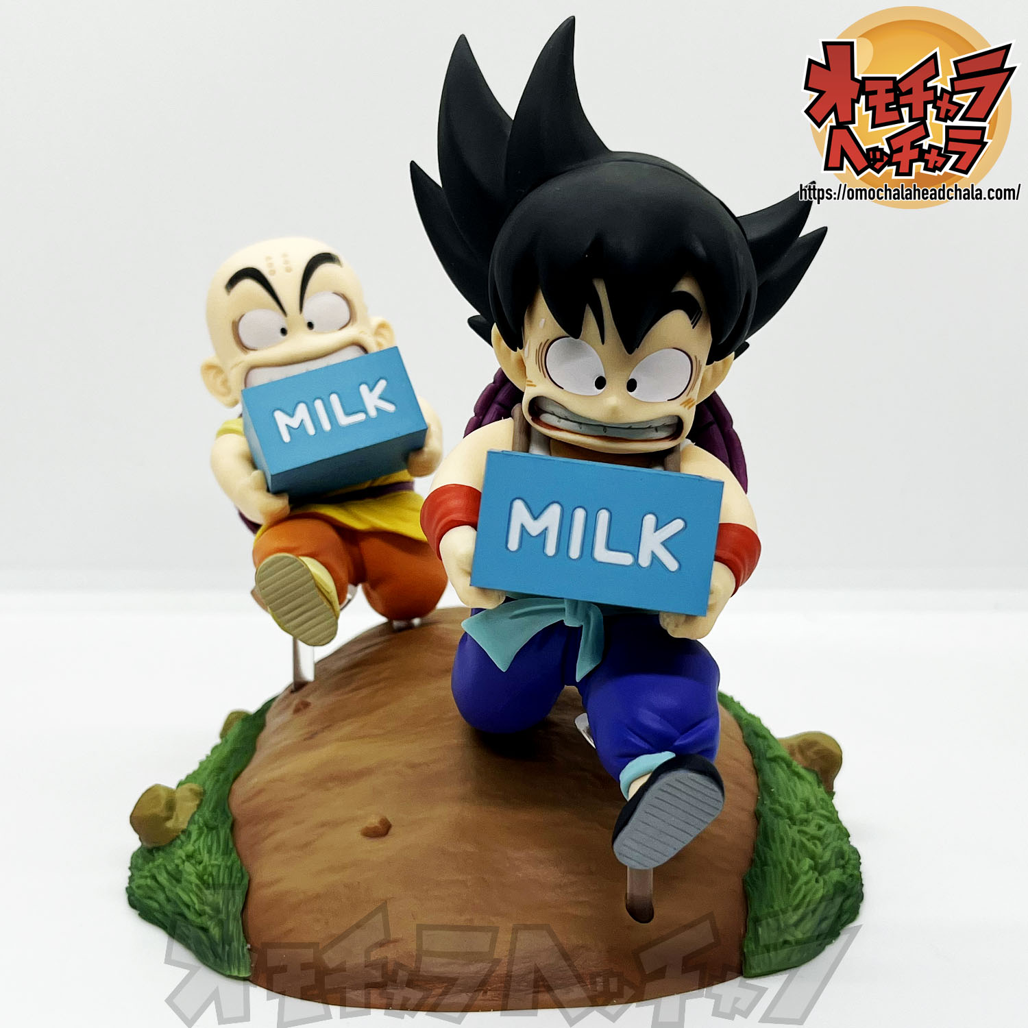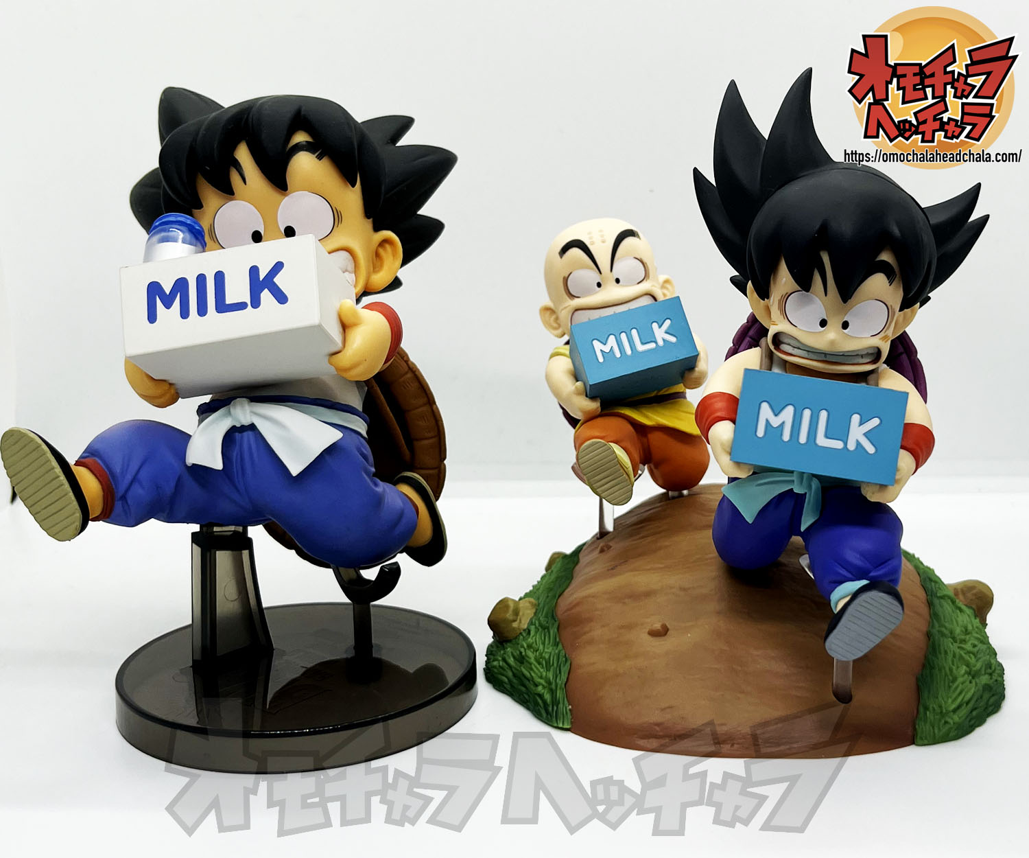 重い亀の甲羅を背負って牛乳配達する悟空とクリリンのフィギュアです。